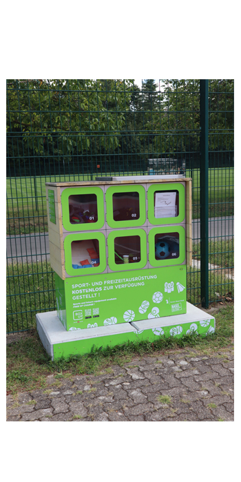 An vier Standorten in Basel stellt das Sportamt in Schliessfächern Spiel- und Sportmaterial zur Verfügung. Nach einmaliger Registrierung können Bälle, Tischtennis-Sets, Kubb usw. kostenlos ausgeliehen werden.