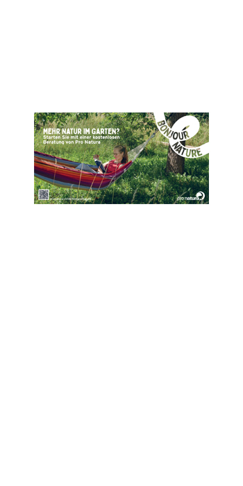 Das Projekt von Pro Natura richtet sich an private Gartenbesitzer und -besitzerinnen und bietet kostenlose Beratungen zum Thema Naturvielfalt im Garten an. Anmeldung online.