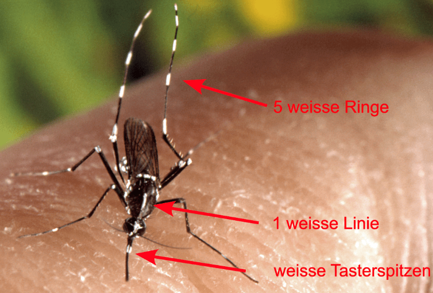 Tigermücke mit Merkmalen © Kantonales Laboratorium - CDC/James Gathany 2000