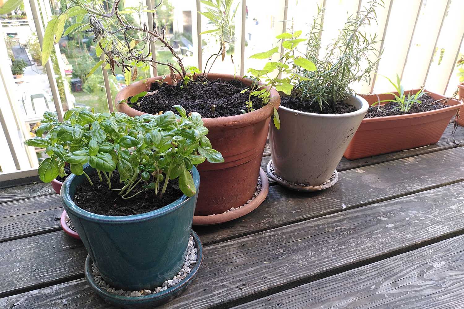 Untersetzer lassen sich auf Balkonen oft nicht vermeiden. Aber du kannst sie sicher gestalten: