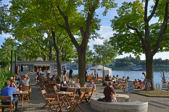 Bäume und Grünflächen haben eine positive Wirkung auf das Stadtklima, die Lufthygiene und die Aufenthaltsqualität.<br>Bildquelle: Kanton Basel-Stadt: www.bs.ch/bilddatenbank</br>