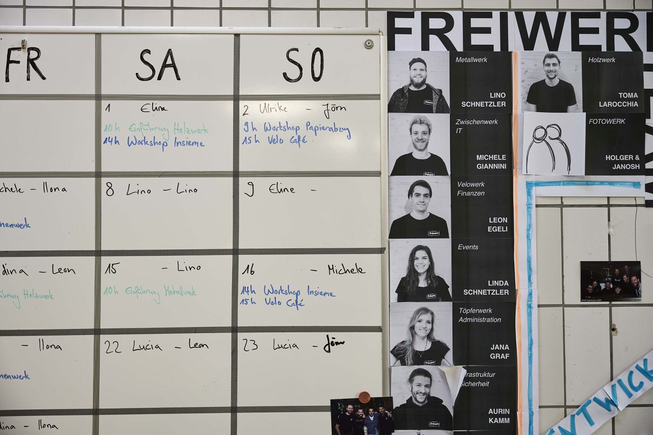 Gegründet wurde das Freiwerk 2017 mit bloss zwei Werkzeugkoffern und einem Raum zur Zwischennutzung. «Seither ist die Gemeinschaftswerkstatt organisch gewachsen, entsprechend den Fähigkeiten, welche die neuen Mitglieder eingebracht haben», erzählt Giannini. Mittlerweile zählt der Verein 350 Mitglieder. Mehr als ein Dutzend von ihnen wirken als Helferinnen und Helfer mit, weitere neun sind im Entwicklungsteam tätig und sechs von diesen zusätzlich im Vorstand, alle ehrenamtlich. «Neben den Workshops, dem begleiteten Arbeiten und den professionellen Maschinen schätzen unsere Mitglieder vor allem den gegenseitigen Austausch und das familiäre Miteinander», so Giannini. Beliebt ist auch der Aufenthaltsbereich, der als Treffpunkt dient und sich wie das Malwerk für Sitzungen und Feiern mieten lässt. Zudem finden im Freiwerk Events statt, die jährlich bis zu 2000 Personen anziehen. Am Tag unseres Besuchs bietet das Freizeitzentrum Insieme im Malwerk gerade einen Bastelnachmittag für Menschen mit besonderem Unterstützungsbedarf an. «Für solche Veranstaltungen sind wir auf Kooperationspartner angewiesen. Mit deren Hilfe gewinnen wir neue Zielgruppen und Sponsoren, sodass wir den Mietzins zahlen, unsere Infrastruktur instand halten und unser Angebot weiter ausbauen können», resümiert Michele Giannini. Denn noch ist das Freiwerk erst zu 80 Prozent selbstfinanziert. «Wir sind gerade dabei, ein Papier- und ein Kochwerk aufzubauen und suchen weitere Unterstützung. Mit dem noch vielfältigeren Angebot möchten wir als Verein selbstragend werden.»