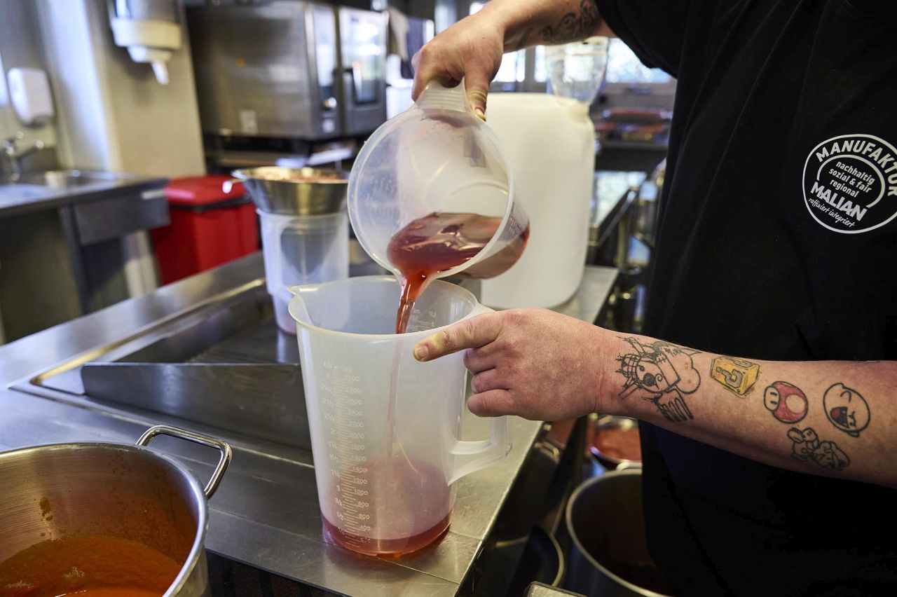 Billig sind die Malian-Produkte nicht: «Man muss das Handwerkliche wertschätzen und bereit sein, beim Kauf etwas Gutes zu tun.» Ein Aufbau- und Arbeitstraining macht derzeit etwa Marco, der in der Küche des Wirtshauses gerade Erdbeerlikör produziert. Wegen körperlicher Beschwerden konnte der junge Mann nicht mehr im erlernten Beruf arbeiten, erklärt Widmer. «Menschen in solchen Situationen verlieren oft den Halt und leiden zusätzlich unter psychischen Problemen. Marco ist bei uns wieder aufgeblüht, weil er hier eine Struktur und eine sinnstiftende Tätigkeit gefunden hat.» Im allerbesten Fall könne eine von der IV oder ALV zugewiesene Person eine Vakanz innerhalb der Unternehmensgruppe besetzen. Manchmal müsse man allerdings auch akzeptieren, dass eine Rückkehr in den ersten Arbeitsmarkt nicht oder noch nicht möglich sei. 200 Menschen konnte der Verein in den fünf Jahren bereits begleiten.